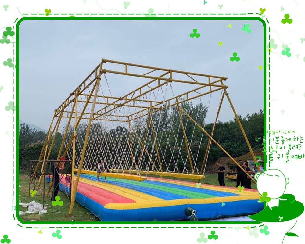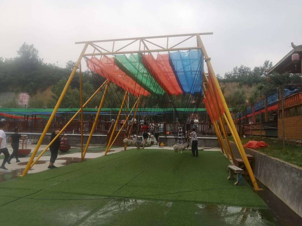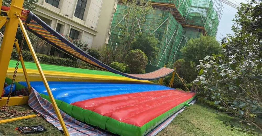 大型多人秋千荡桥,说它是大型的并不代表他就不安全,虽然占地比较大,钢架秋千荡桥游戏设备互动暖场道,但是其实游客荡桥荡的高度是很低的,可移动多人钢架秋千荡桥设备厂家,而且下面有安全充气垫保护,起着很重要的保护作用,即使有人不小心摔倒了,也是直接落到气垫上,有很好的缓冲防护作用,不会使人受伤什么的,是安全的,可以放心玩,也很好玩。